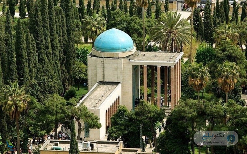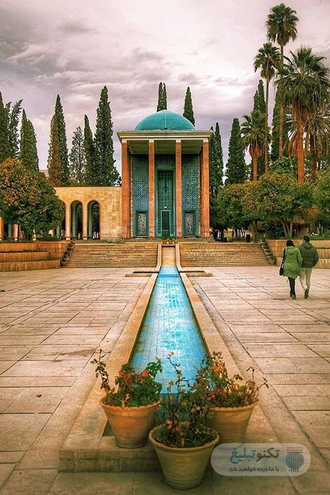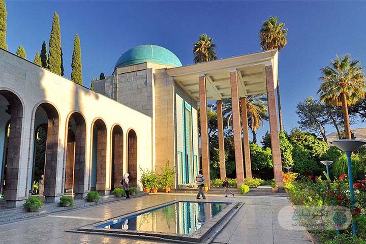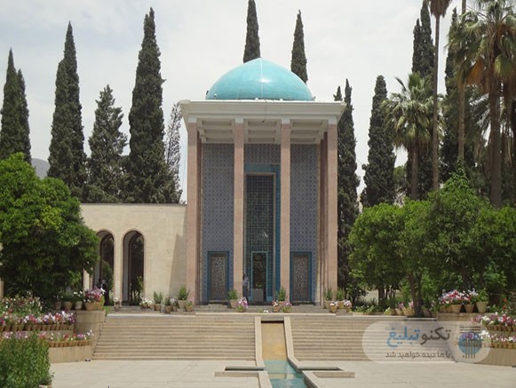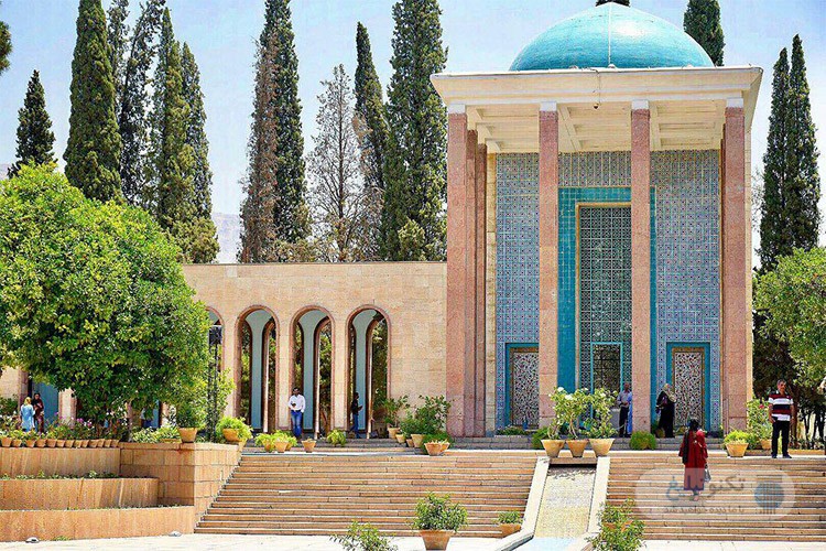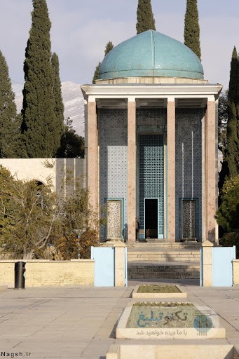 این بیت زیبا که بر در ورودی آرامگاه سعدی نوشته شده است، ترام احساس هر بازدید کننده ای است که پا به محوطه ی روح افزای آرامگاه سعدی می نهد و فضای معنوی آن را با جان و دل در می یابد. در شهرک سعدی شیراز، باغ کهن سالی با مساحت نزدیک به 8000 متر مربع، آرامگاه شاعری است که آوازه ی سخن او چهار گوشه ی جهان را در نوردیده است. هم او که نامش چنان پیوندی با شیراز یافته که نمادی از جاودانگی این شهر به شمار می آید. شاعری که هر ساله مشتاقانی بی شمار از دورترین جای جهان به شوق دیدارش میشتابند و لختی در کنارش جان تشنه ی خویش را با عشق و شور و شیدایی او سیراب می سازند. در باغ سعدیه ، انواع درختان نخلی، کاج و گل های زینتی ، آرامگاه سعدی را در بر گرفته و فضایی بهشتی، شایسته ی ذوق و احساس این شاعر بزرگ شیراز پدید آورده است. سقف آرامگاه، همانند چهل ستون اصفهان ساخته شده است. مزار سعدی در اتاقی هشت ضلعی با سقفی بلند، در پشت همین ايوان قرار دارد. سنگ قبر سعدی در روزگار کریم خان زند بر مزار او نهاده شده و بر آن قصیدهی زیبای زیر در نعت حضرت رسول اکرم (اصلی) نوشته شده است:
