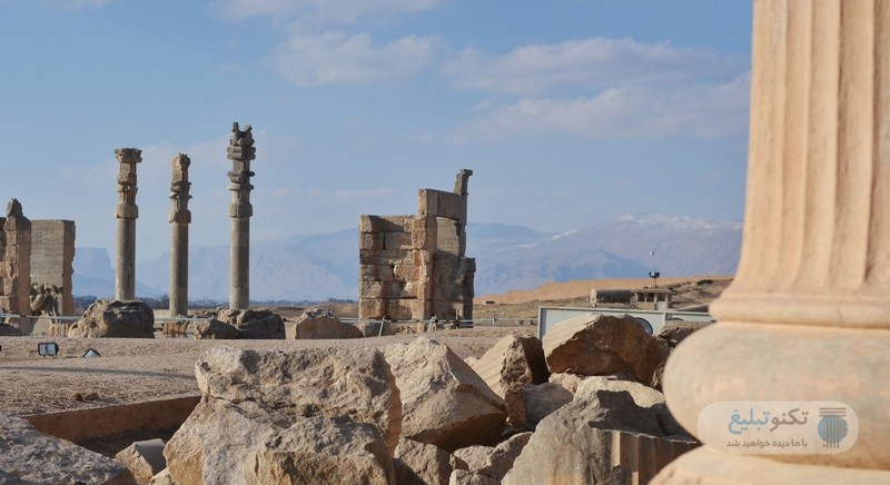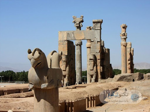 سرانجام تخت جمشید : مجموعه کاخهای تخت جمشید، در سال (۳۳۰ پیش از میلاد) به دست اسکندر مقدونی به آتش کشیده شد و تمام بناهای آن به صورت ویرانه در آمد. از بناهای بر جای مانده و نیمه ویرانه، بنای مدخل اصلی تخت جمشید است که به کاخ آپادانا معروف است و مشتمل بر یک تالار مرکزی با ۳۶ ستون و سه ایوان ۱۲ ستونی درقسمتهای شمالی، جنوبی و شرقی است که ایوانهای شمالی و شرقی آن بهوسیله پلکانهایی به حیاطهای مقابل متصل و مربوط میشوند. بلندی صفه در محل کاخ آپادانا ۱۶ متر و بلندی ستونهای آن ۱۸ متر است. اینمجموعه در فهرست آثار تاریخی ایران و نیز در فهرست میراث جهانی یونسکو به ثبت رسیده است.