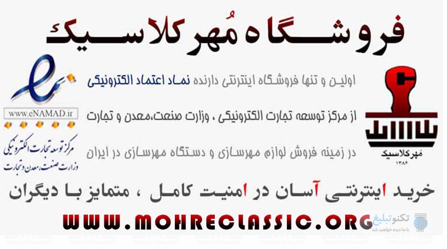 مهر کلاسیک در تهران به آدرس : تهران ، انتهای سازمان آب غربی نرسیده به کاشانی , روبروی پارک استقلال , پاساژ پردیسان , طبقه همکف , داخل پاساژ پلاک 36 , مهرسازی مهرکلاسیک، فلکه دوم صادقیه