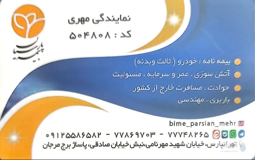 location_onتهرانپارس_خیابان دماوند_خیابان شهیدمهرنامی تقاطع خیابان صادقی برج مرجان طبقه همکف (پاساژمرجان)پلاک6بیمه پارسیان